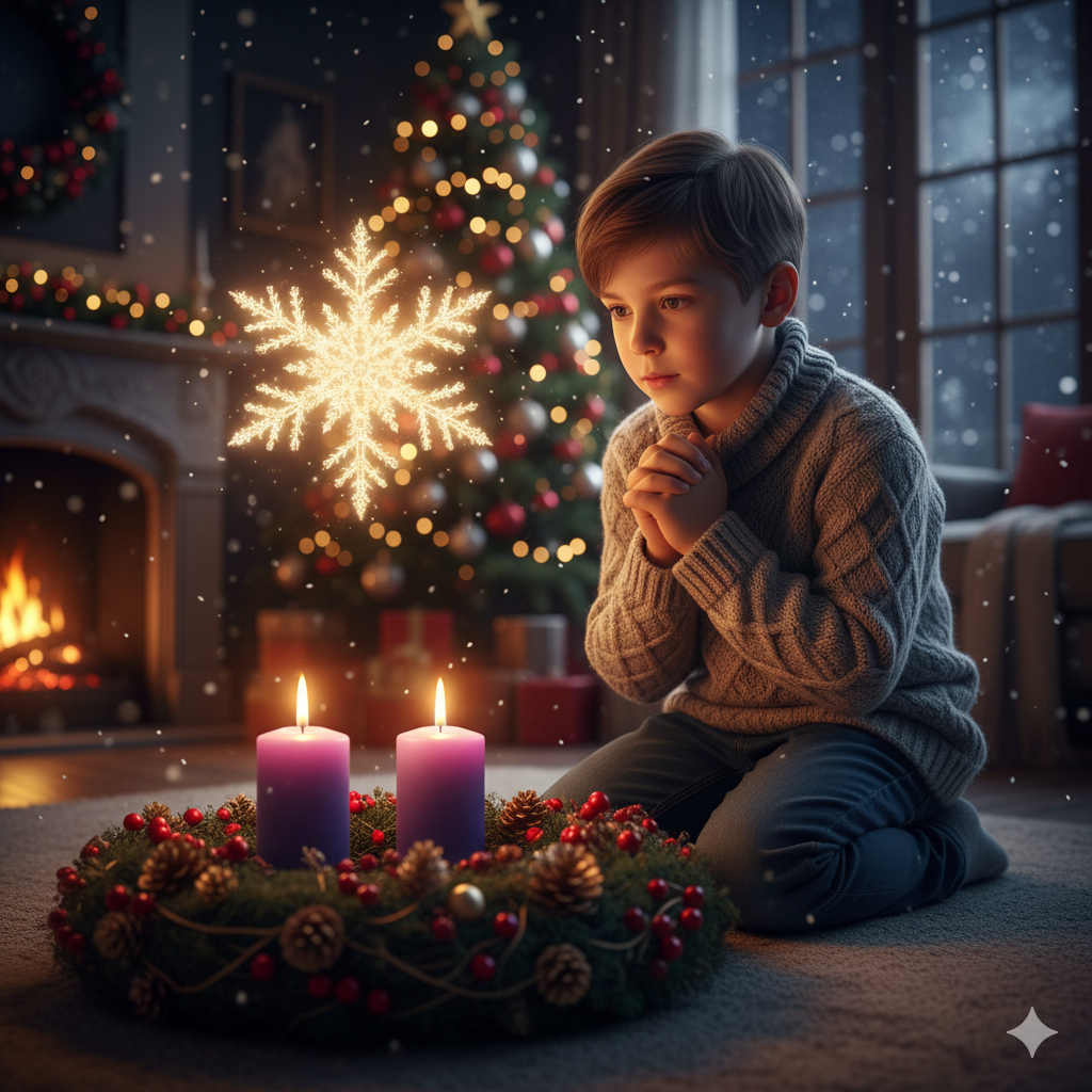 Délután a család összegyűlt az adventi koszorú körül. Édesanyja ünnepélyesen meggyújtotta a második gyertyát is a remény gyertyája mellé. Két láng táncolt most a koszorún.
