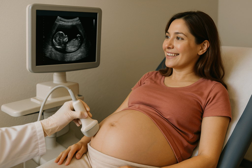 Ellenőrzik a baba méretét, fekvését, a méhlepény helyzetét, a magzatvíz mennyiségét.